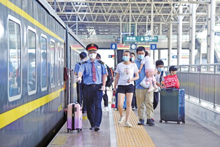 为满足旅客出行需求,贵阳客运段积极做好老幼病残孕等重点旅客的预约服务工作,为重点旅客全程提供帮助和引导,确保重点旅客平安、温馨出行。图为近日,该段K112次列车工作人员引导盲人旅客上车。 沈向全 摄