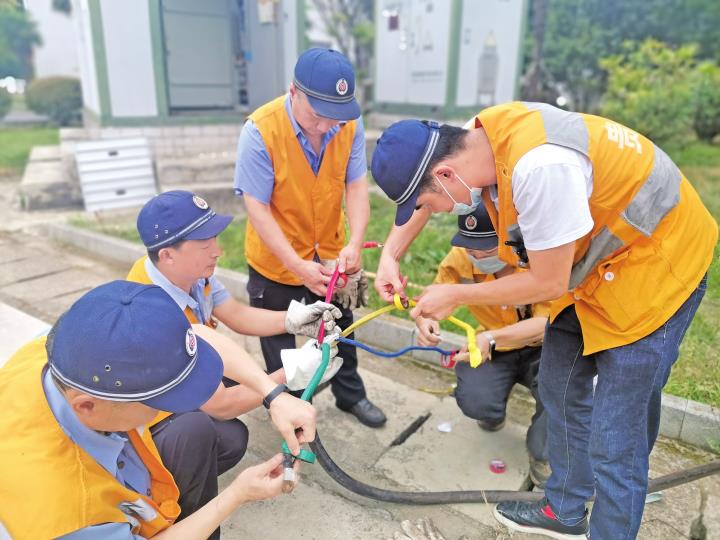 ↑为解决疫情期间集中管理职工的住宿问题,贵阳南车辆段设备车间临时组建了6人应急小分队搭建“火车旅馆”。图为9月3日,应急小分队在接“火车旅馆”的动力电源线。 桂建军 摄