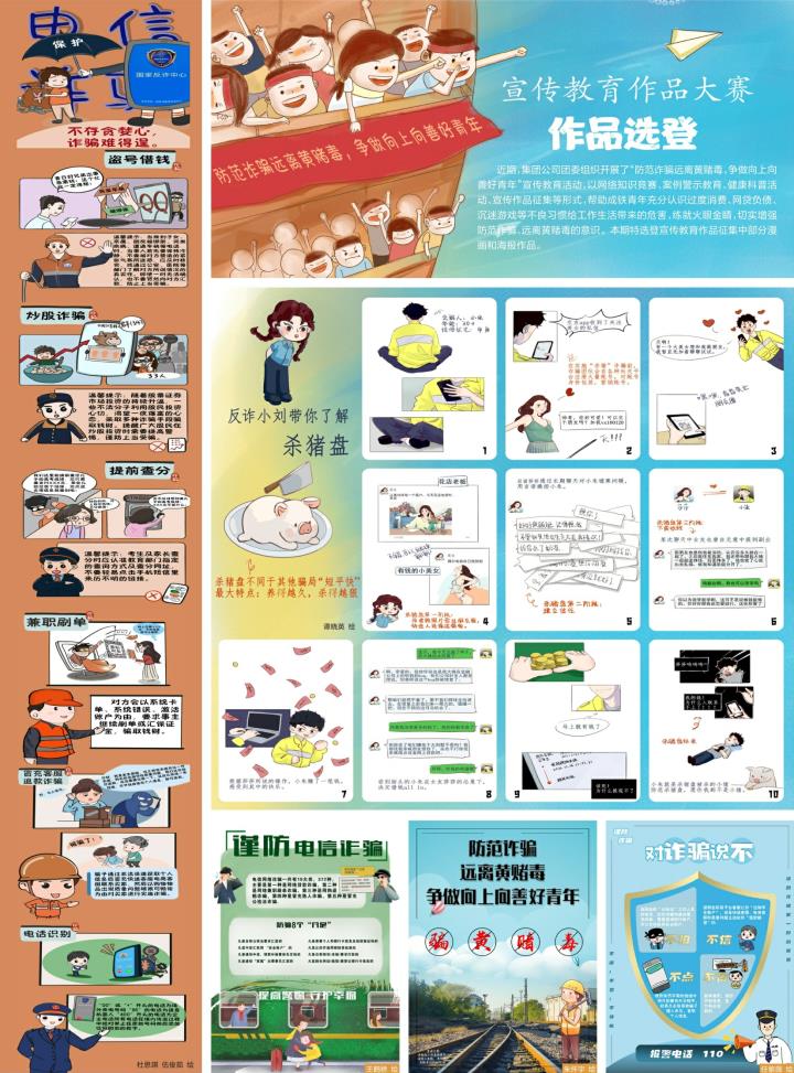 近期,集团公司团委组织开展了“防范诈骗远离黄赌毒,争做向上向善好青年”宣传教育活动,以网络知识竞赛、案例警示教育、健康科普活动、宣传作品征集等形式,帮助成铁青年充分认识过度消费、网贷负债、沉迷游戏等不良习惯给工作生活带来的危害,练就火眼金睛,切实增强防范诈骗、远离黄赌毒的意识。本期特选登宣传教育作品征集中部分漫画和海报作品。