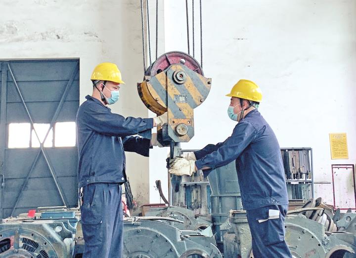 为确保运输畅通有序,成都机务段持续开展防洪设施设备专项检查整治行动,对防洪设备进行集中检查维护,保障防洪设施设备在汛期正常运行。图为近日,该段设备车间检修人员对电动双梁桥式起重机进行解体检查。 龙宣佑 摄